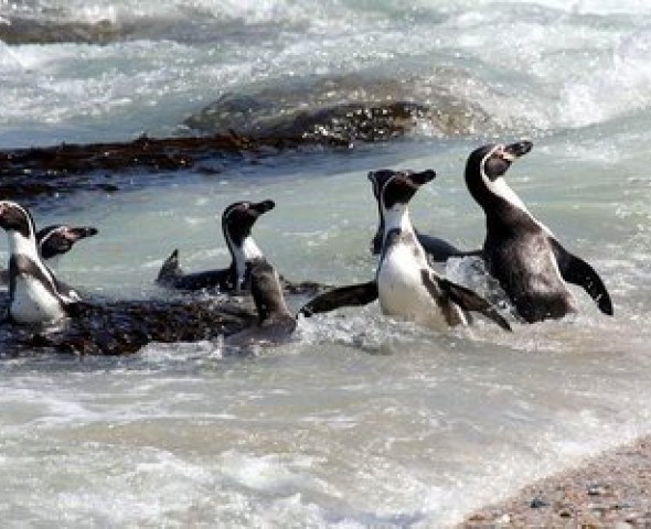 Humboldt penguins are found along the coasts of Peru and Chile, they live at a temperature that varies a lot. They are found in areas with –3 c ° but also in beaches and areas with +24 c °. They are medium-sized birds, when adults reach 60 centimeters in height and 5 kg in weight. They can live for up to twenty years. They feed mainly on molluscs, sardines and Krill. To hunt they do not exceed 30 meters in depth and always remain in groups. Sexual maturity occurs between two and seven years and usually form a fixed pair throughout life. They normally lay two eggs which are hatched for 42 days by both individuals.