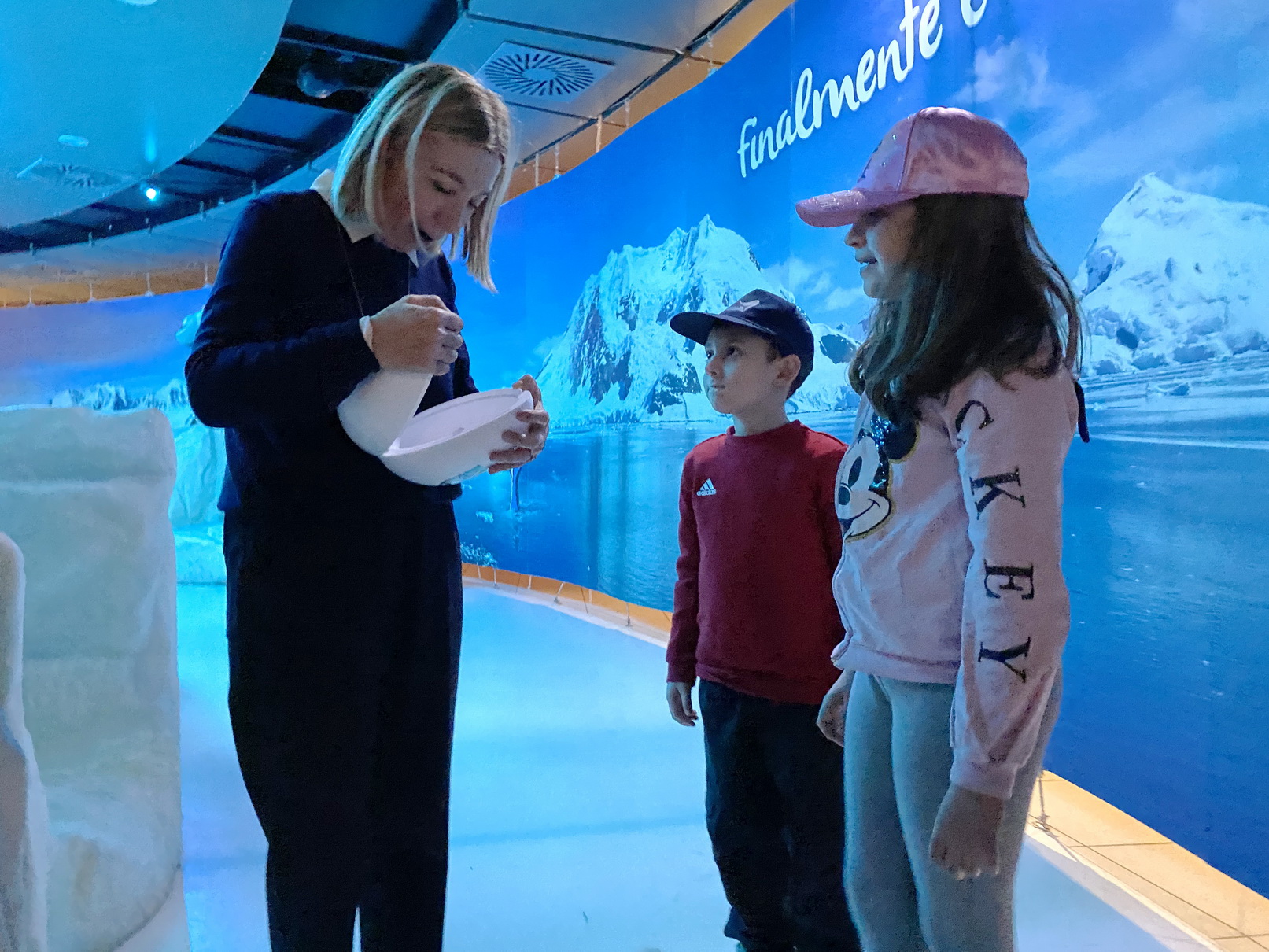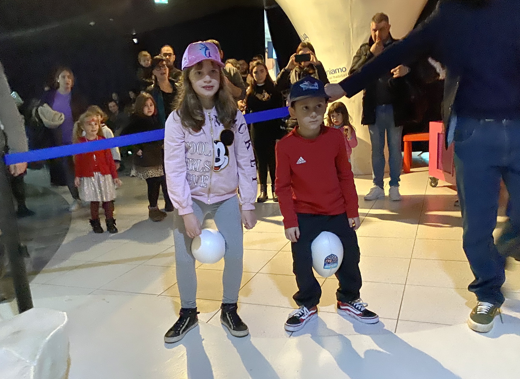 Ciascun bimbo, tenendo con le gambe un uovo di polistirolo con all'interno il nome, doveva emulare l'istinto dei maschi del Pinguino Imperatore che custodiscono l'uovo con calore corporeo, Elia e Milena hanno sfidato con determinazione le scenografiche orche e le fameliche foche lungo il percorso. e hanno guadagnato il traguardo. Il prestigioso uovo vincitore è stato solennemente consegnato alla Madrina, che, aprendolo con emozione, ha rivelato il suo contenuto prezioso: il nome "Bilù".