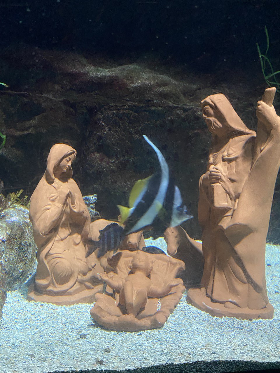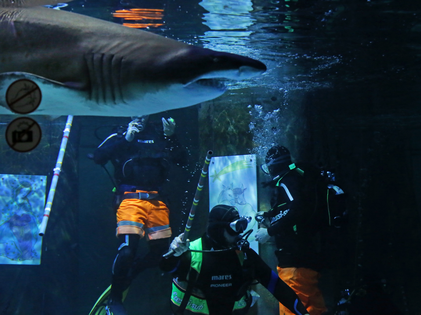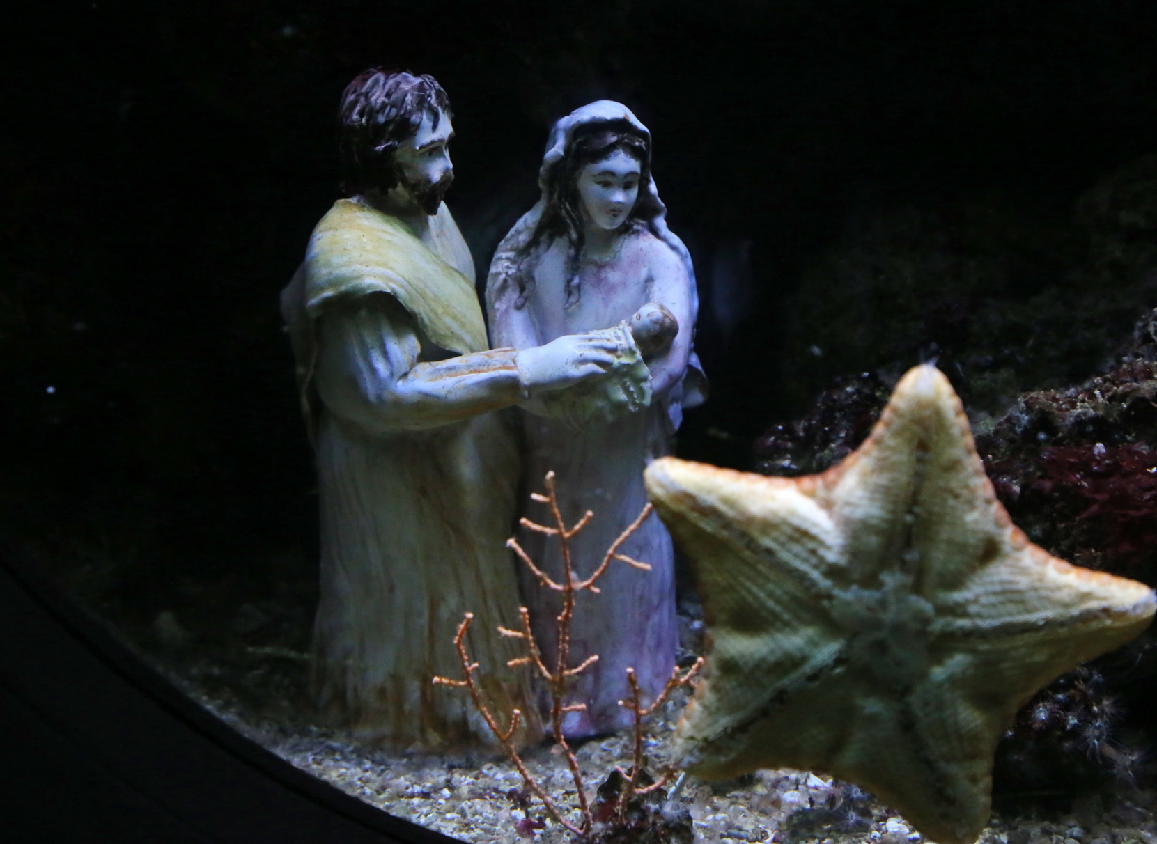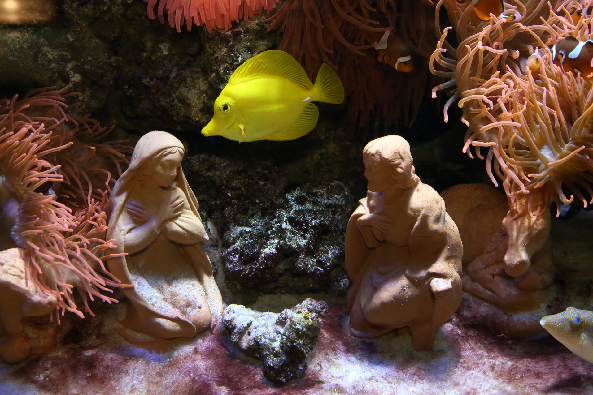 La tradizione italiana della Natività è interpretata in modo unico e suggestivo: immersa nelle vasche fra migliaia di pesci. Fra le opere spicca il “Natale del Mare”, firmato dalla maestra ceramista Maria Cristina Sintoni, in mostra nella grande vasca degli grandi squali toro d’Italia.