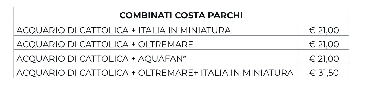 - Prezzi ed orari potrebbero subire delle variazioni in base alla stagionalità e allo sviluppo dell’Acquario.